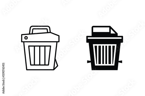 Trash Can Vector Icon Set Minimalist Style Isolated On White Background