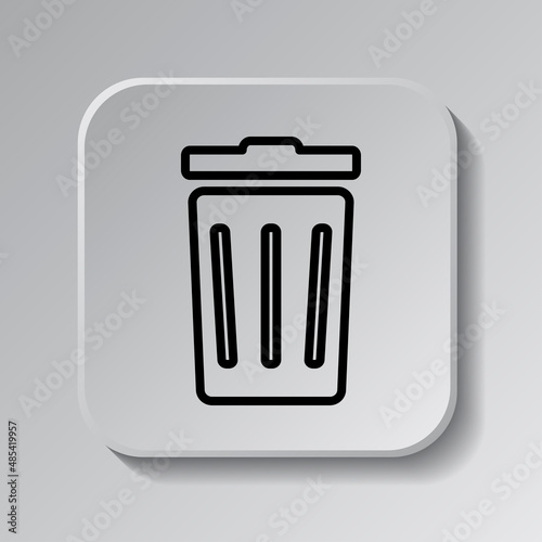 Trashcan simple icon vector. Flat desing. Black icon on square button with shadow. Grey background.ai