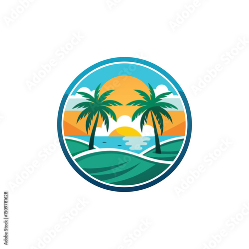 Travel, Beach and palm trees trees in the ocean template for logo Isolated white background