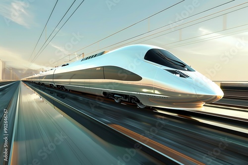 Travel brochures, contemporary transportation, and technology themes would all benefit from this high-speed train in motion, Generative AI.