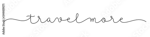 TRAVEL MORE black vector monoline calligraphy banner with swashes