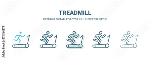 treadmill icon in 5 different style. Outline, filled, two color, thin treadmill icon isolated on white background. Editable vector can be used web and mobile
