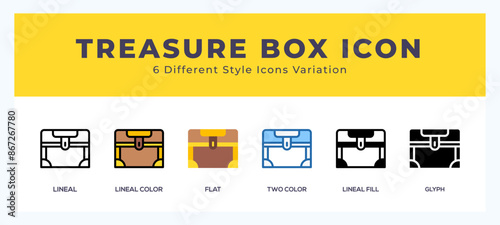 Treasure box set of icons. Vector illustration with different styles.