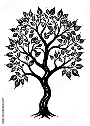 Tree . Black and white botanical pattern. For use in graphics, materials. Abstract plant shapes. Minimalist illustration for printing on wall decorations. Generated by Ai
