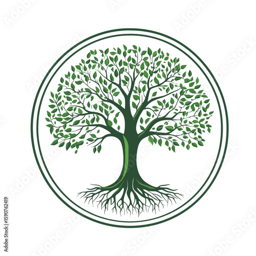 tree and roots logo templates with circular shape, oak tree with the gap between the tree and the root to fill in the writing