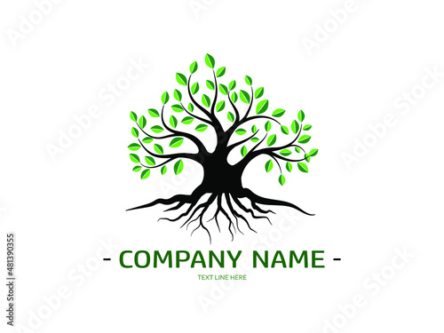 Tree and roots with green leaves look beautiful and refreshing. Tree and roots LOGO style.