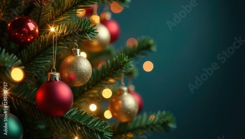 Tree branches adorned with sparkling ornaments and twinkling lights, ornaments, sparkles