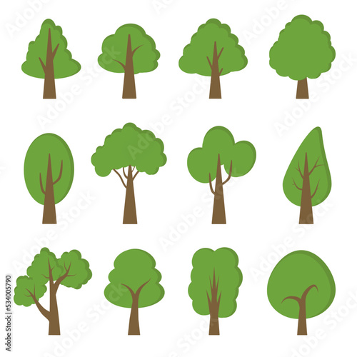 Tree collection illustration Variety of nature, environment, vector cartoon shapes of various trees for decoration.