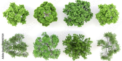 Tree Design. 3D Top View Green Trees Collection for Architectural Visualization and Garden Decoration