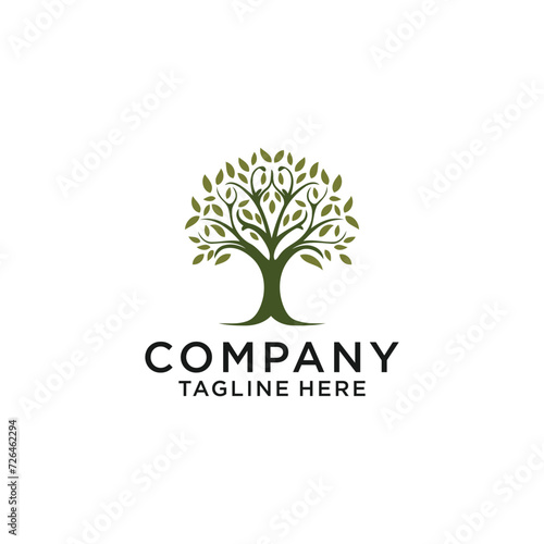 Tree logo icon template design. Garden plant natural line symbol. Green branch with leaves business sign. Vector illustration.