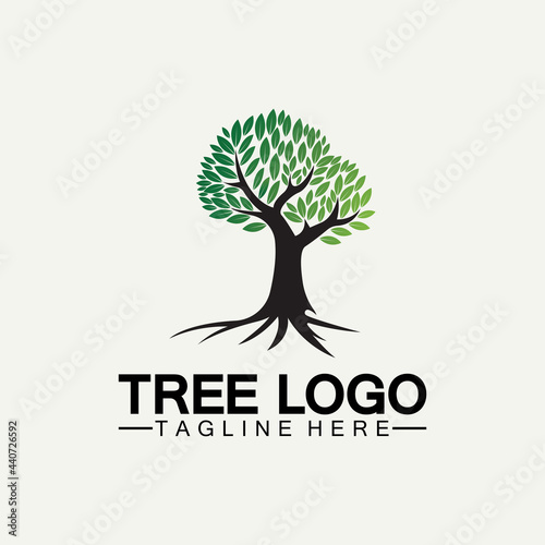 Tree logo icon vector illustration design.Vector silhouette of a tree templates of tree logo and roots tree of life design illustration