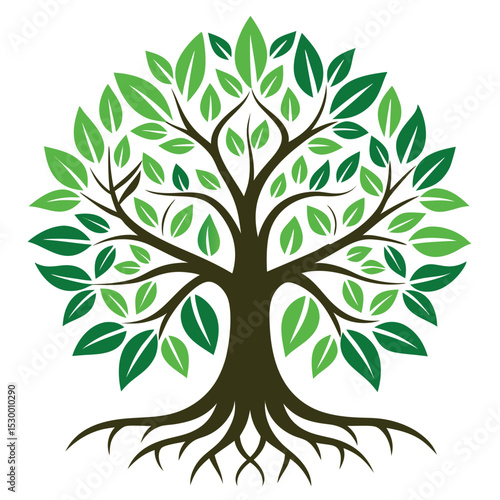 Tree of Life with Roots and Leaves – Elegant Line Art Vector Design