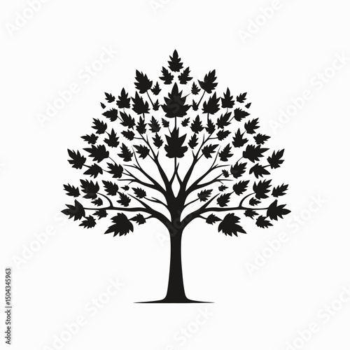 Tree silhouette vector graphic design nature art illustration black and white leaf foliage branch trunk