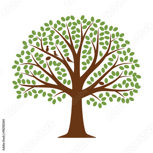 Tree silhouette vector illustration Isolated on White background. Deciduous, Oak, Pine trees for Garden and Park Design