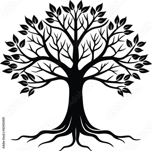 Tree silhouette vector. Tree with roots. Tree logo, icon vector illustration.. black and white tree.