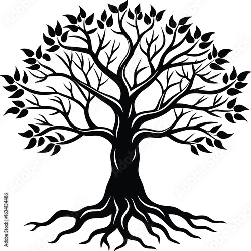 Tree silhouette vector. Tree with roots. Tree logo, icon vector illustration.. black and white tree.