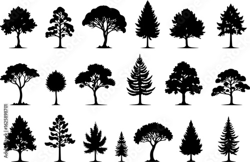 Tree Silhouettes, Forest Shapes, Pine Trees,