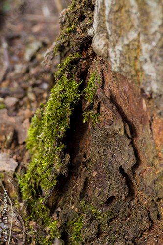 tree trunks covered with moss