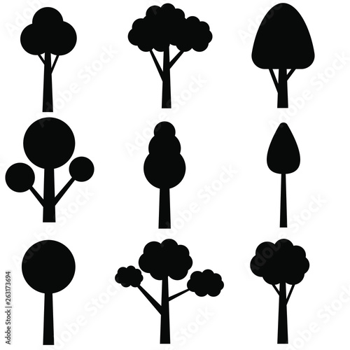 Tree vector icon set. Trees collection. Icons of green plants, forest. Trees illustrations.