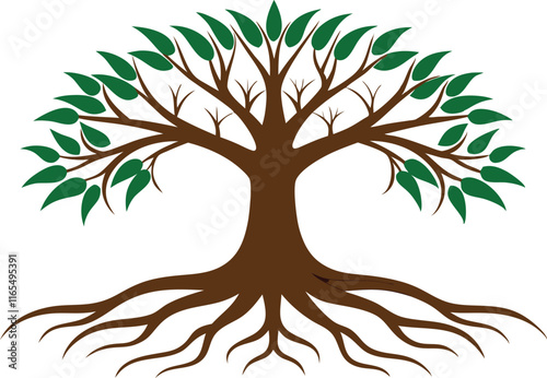 Tree with Roots Vector Art Illustration Natural Design