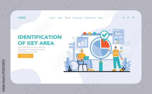 Trend watching web or landing. Specialist tracking new business trends. Forecasting, data analysis and promotion strategy development. Flat vector illustration