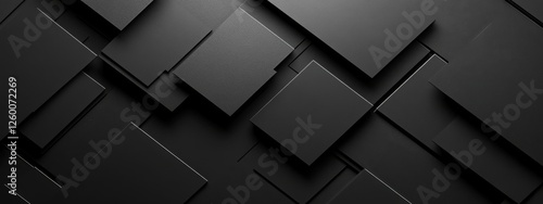 Trendy black background with geometric simplicity, ideal for design and banner templates. Featuring fashionable abstract wallpaper with minimalistic elements and a central white space for text.