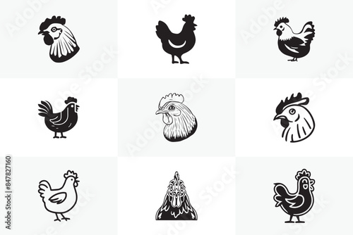 Trendy chicken head logo: editable vector template with customizable name, ideal for modern branding and versatile applications