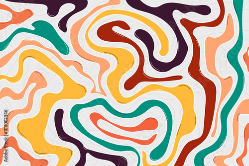 Trendy colorful design with funky vintage tone. Abstract background, Curvy lines and waves
