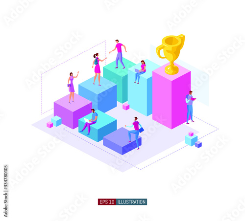Trendy flat illustration. Career ladder. Motivation. Goal achievment. Way up. Golden cup. Template for your design works. Vector graphics.
