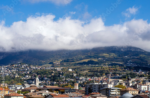 Trento, Italy - October 24th 2020: View of the city of Trento during a sunny day. Top view of the city.