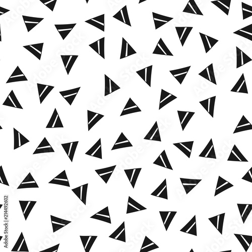 Triangles. Black and white seamless pattern. Geometric, abstract background for covers, textile. Doodle shapes.