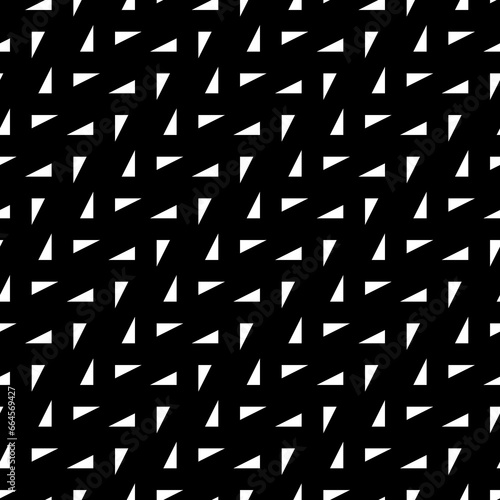 Triangular blocks wallpaper. Repeated white geometrical figures on black background. Seamless surface pattern design with polygons. Mosaic motif. Digital paper for page fills, web designing. Vector
