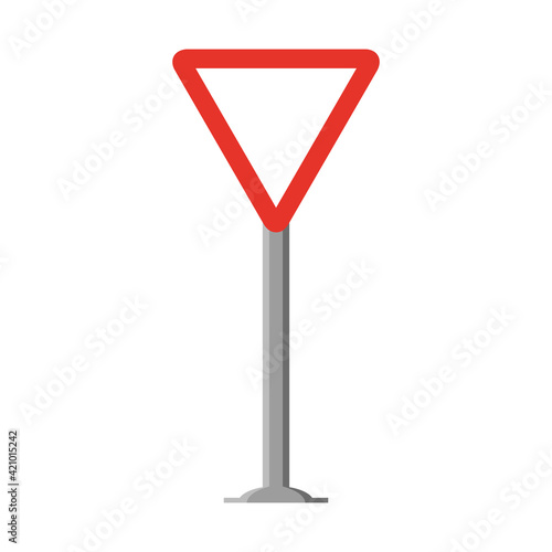 Triangular traffic signal in white and red, with stick and isolated on white background. Mandatory Give way.