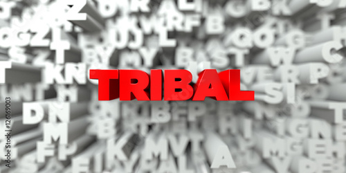 TRIBAL - Red text on typography background - 3D rendered royalty free stock image. This image can be used for an online website banner ad or a print postcard.