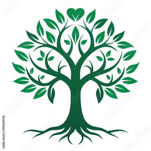 Tribal style tree of life with heart branches and intricate roots symbolic nature art