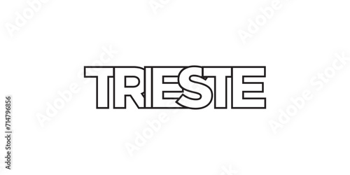 Trieste in the Italia emblem. The design features a geometric style, vector illustration with bold typography in a modern font. The graphic slogan lettering.
