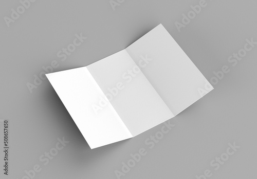 Tri-fold brochure, booklet mockup for graphic designers presentations and portfolios. 3D rendering.