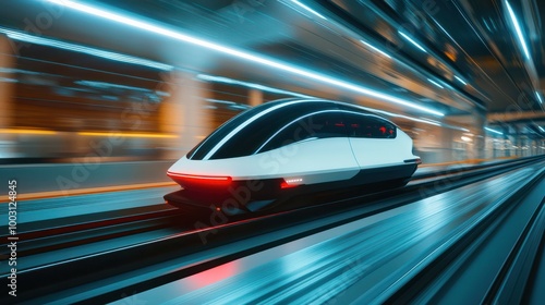trim of the future, electric unmanned vehicle, fast. on high speed railway, hi tech future digital transport concept.