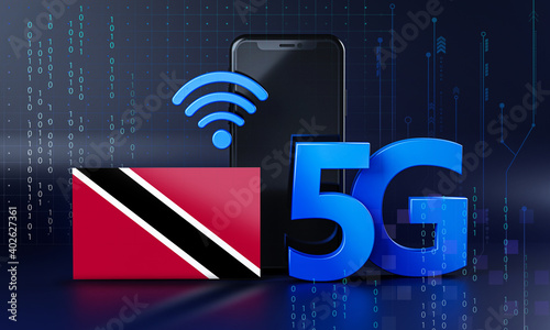 Trinidad and Tobago Ready for 5G Connection Concept. 3D Rendering Smartphone Technology Background