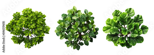 Trio of Bushy Green Plants with Dense Leaves Isolated on Transparent Background