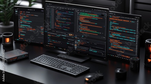 Triple Monitor Coding Workspace