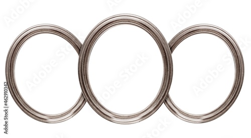 Triple silver frame (triptych) for paintings, mirrors or photos isolated on white background