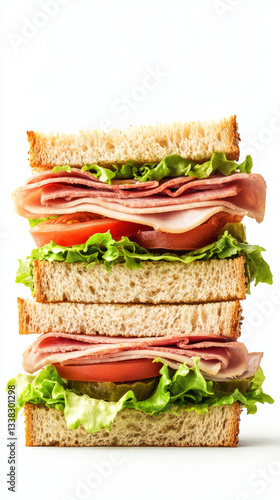 Triple-Decker Delight: An appetizing three-layered sandwich showcases fresh ingredients, creating a visual feast.