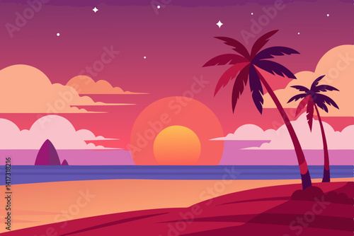 tropical beach with palm trees