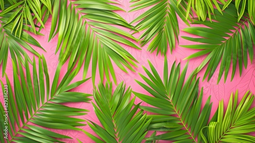 Tropical green palm leaves pattern on bright pink background. Nature, summer, and botanical designs