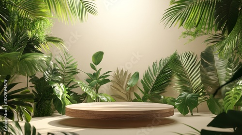 Tropical Greenery Surrounding a Wooden Platform for Display