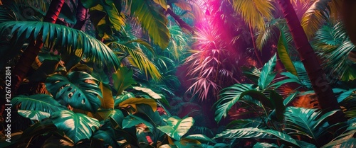 Tropical Jungle Leaves Texture Background with Vibrant Foliage and Space for Text or Graphics