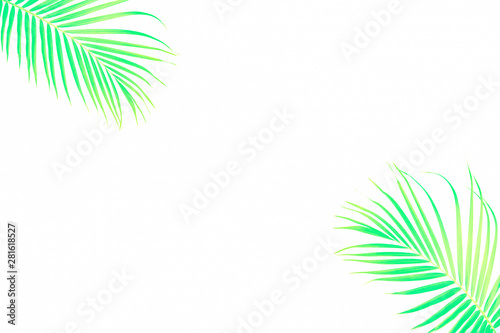 Tropical palm leaves on a white background for designs with a blank space for text, Summer Styled. High quality image. Travel vacation concept. Summer background. Road frame set. Flat lay, top view.