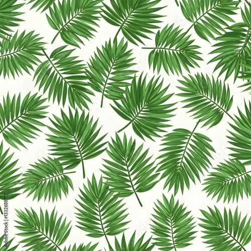 Tropical palm leaves pattern in bold green hues on a white background. Seamless Patterns