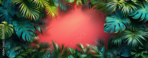 Tropical Palm leaves. Summer exotic frame background with place for text